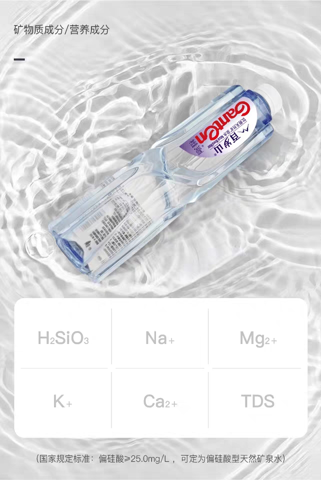 經(jīng)小編了解,百歲山天然礦泉水是采自于地下深層巖石裂隙中,從不使用湖水、河水、水庫(kù)水等地表水。而且,百歲山的礦泉水源具有《采礦許可證》,屬于國(guó)家液體礦產(chǎn),如同金礦銀礦。一經(jīng)開采可直接飲用,水源天然無(wú)污染,還含有高偏硅酸,以及鉀、鈉、鈣、鎂等豐富礦物質(zhì)及微量元素。正因?yàn)檫@樣優(yōu)質(zhì)珍貴的礦泉水源,才成就了水中貴族獨(dú)一無(wú)二的品質(zhì)。