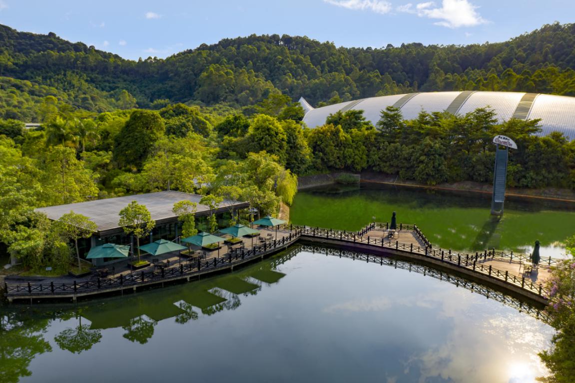 百歲山生產(chǎn)基地坐落在羅浮山脈腳下,整個(gè)工廠與周圍的自然生態(tài)融為一體。進(jìn)入廠區(qū)后,整潔開闊的道路、郁郁蔥蔥的樹木、頗具藝術(shù)感的銀龜型廠房,都讓人不敢相信這里是一個(gè)工廠,簡(jiǎn)直就是旅游景區(qū),也太美了吧!
