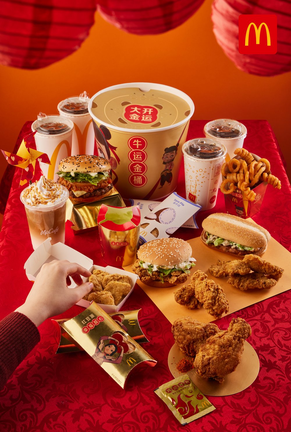 在新春佳節(jié)來臨之際,麥當勞推出多款春節(jié)限定的創(chuàng)新美食、年味濃濃的命名和包裝為顧客奉上新春祝福,“牛”運金桶、肉醬安格斯厚“?!氨ぁ⒋蠹蟆袄酢北苛?、妙“芋“連珠奶茶、紅豆派、好運“會花生”牛軋?zhí)秋L味拿鐵、好運“喜鳳梨”拿鐵、魔栗轉(zhuǎn)圈圈蒙布朗蛋糕等,陪伴顧客過個美味春節(jié)。同時,為了應對不同的場景需求,麥當勞提供不同分量的套餐,不論是2-3人的小聚會,還是1人食,都能有不同的超值選擇。同時i麥樂送還推出4種超值單人餐優(yōu)惠券大禮包,讓顧客一人過年也不將就。此外,2月17日前打開麥咖啡小程序即可得“新年大禮包”,2月23日前購買麥咖啡飲品即贈好運風車等優(yōu)惠活動,在新的一年里,麥咖啡將好運送給顧客。