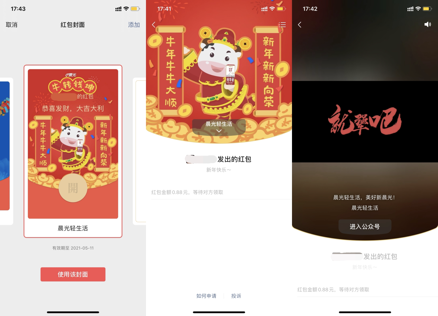 2021年的春節(jié)線上定制紅包封面成為網(wǎng)民熱議的話題,相較于往年的春節(jié)紅包,各具特色、風(fēng)格不一的紅包封面無疑是今年最明顯的特色了。晨光乳業(yè)也為此做出了嘗試,針對晨光牛奶用戶和粉絲大膽設(shè)計,將憨態(tài)可掬的品牌IP放置在封面C位。無疑,這波寵粉操作有助晨光牛奶獲得更多粉絲的點(diǎn)贊,增強(qiáng)用戶粘度。