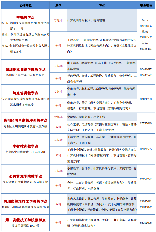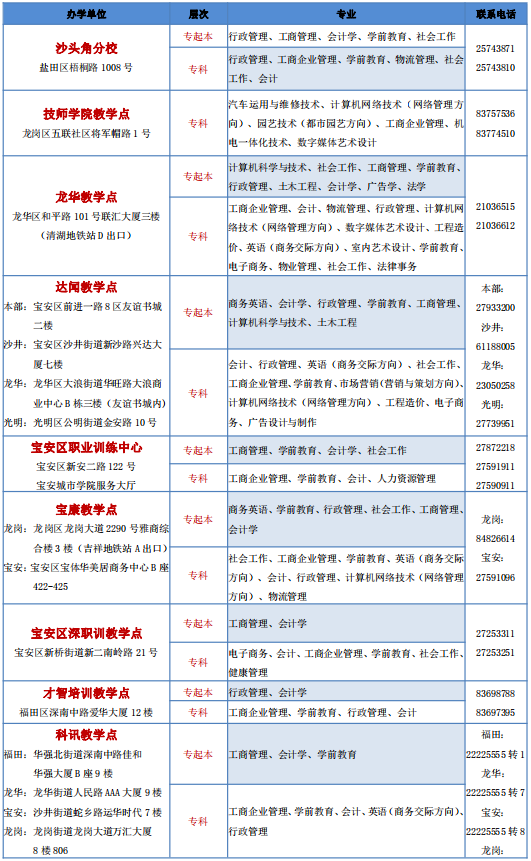 深圳開(kāi)放大學(xué)2021年春季招生教學(xué)點(diǎn)與專(zhuān)業(yè)公示