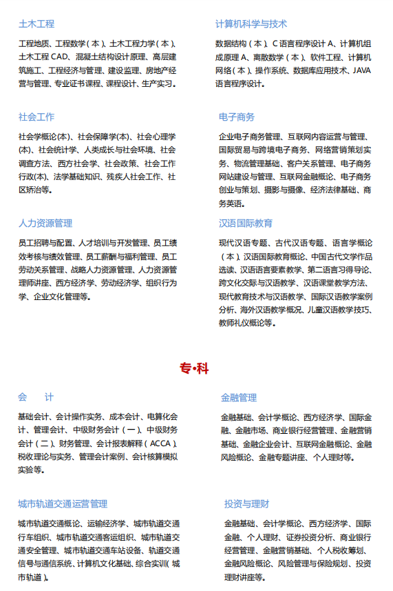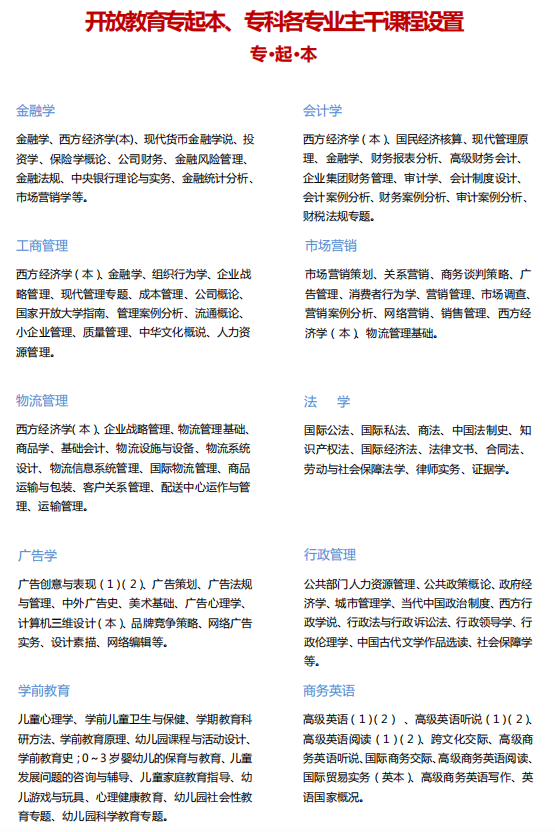 專(zhuān)科起點(diǎn)本科專(zhuān)業(yè):具有國(guó)民教育系列相同或相近專(zhuān)業(yè)高等專(zhuān)科(含專(zhuān)科)以上學(xué)歷者。