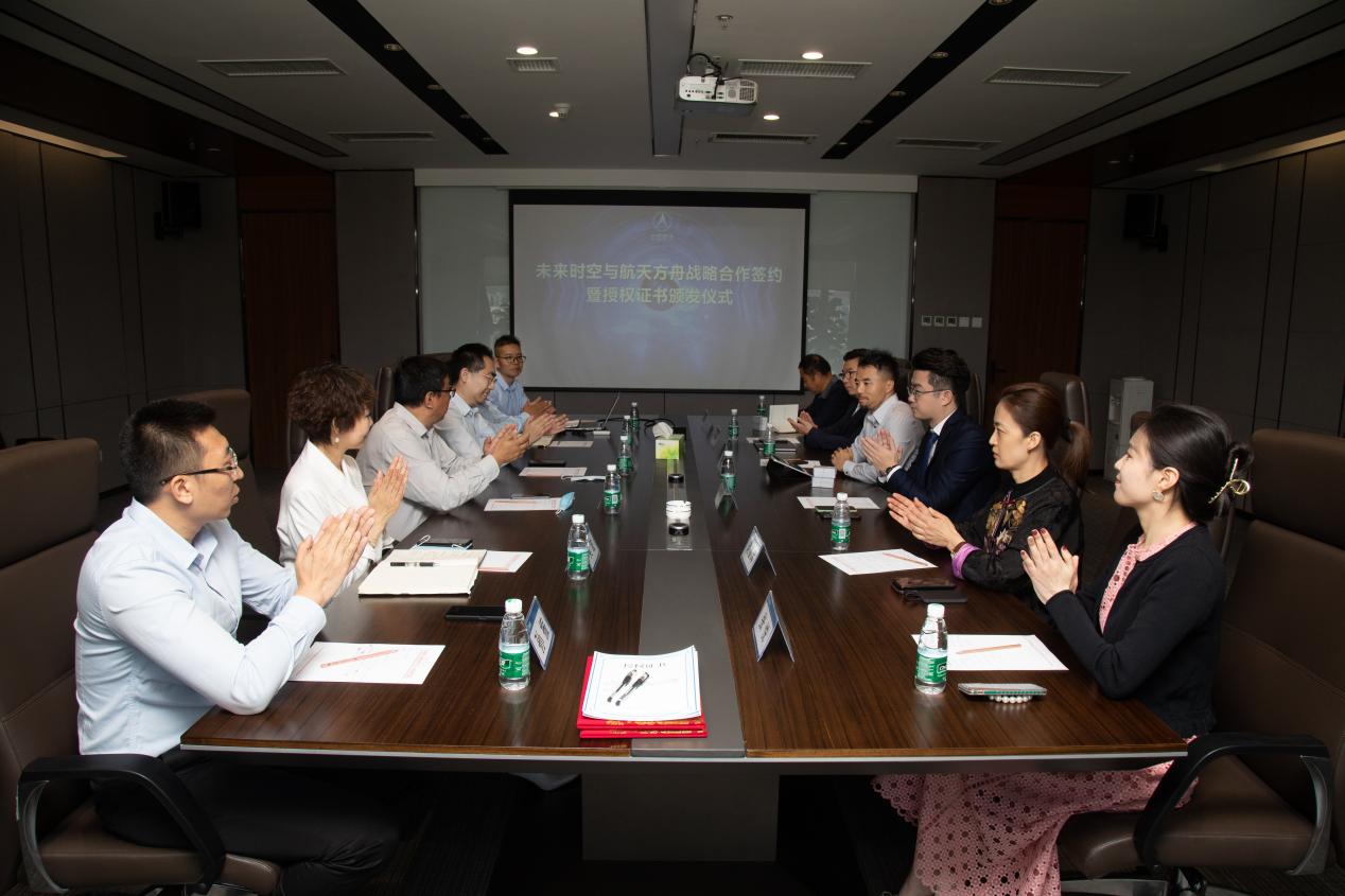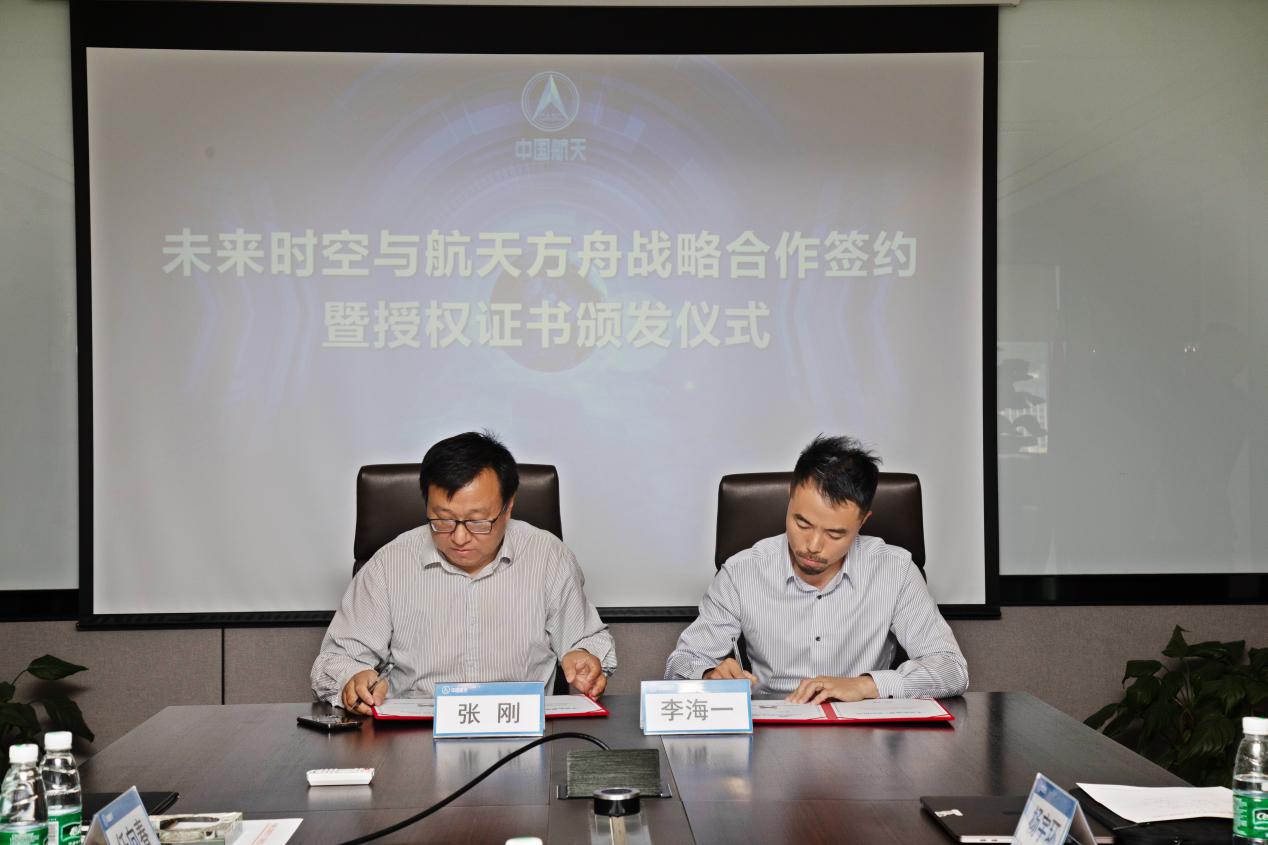 北京航天方舟空間技術(shù)有限公司董事長張剛,未來時空(深圳)文化產(chǎn)業(yè)有限公司創(chuàng)始人兼董事長李海一、北京航天方舟空間技術(shù)有限公司總經(jīng)理孫愻,未來時空(深圳)文化產(chǎn)業(yè)有限公司聯(lián)合創(chuàng)始人陳欣泉、楊宇環(huán)等出席本次儀式。