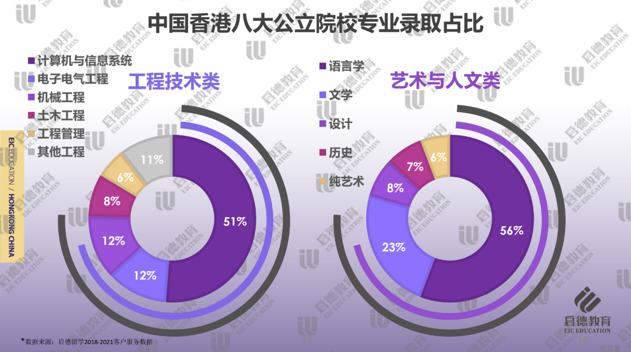 計算機(jī)與信息系統(tǒng)(51% )、電子電氣工程(12% )和機(jī)械工程(12% )在工程技術(shù)類學(xué)科中錄取占比最多。作為金融中心的香港,銀行或金融機(jī)構(gòu)對于復(fù)合型人才的需求非常大,除了港校的工程學(xué)院設(shè)置計算機(jī)與信息系統(tǒng)專業(yè)外,很多學(xué)校都有商學(xué)院和工程學(xué)院聯(lián)合授課的商務(wù)資訊系統(tǒng)類專業(yè)。得益于深圳高科技產(chǎn)業(yè)對通信方面人才的需求量,去香港就讀電子電氣工程專業(yè)的學(xué)生也在增多,除了電子工程、通信工程弱電專業(yè)以外,香港大學(xué)和香港理工大學(xué)還設(shè)有針對強(qiáng)電的相關(guān)課程,學(xué)生畢業(yè)后可回到內(nèi)地從事電力系統(tǒng)的相關(guān)工作。QS排名前100的5所名校均設(shè)置機(jī)械工程專業(yè),工程類專業(yè)的錄取難度相對略低,學(xué)生可獲得更大的入讀名校的機(jī)會。