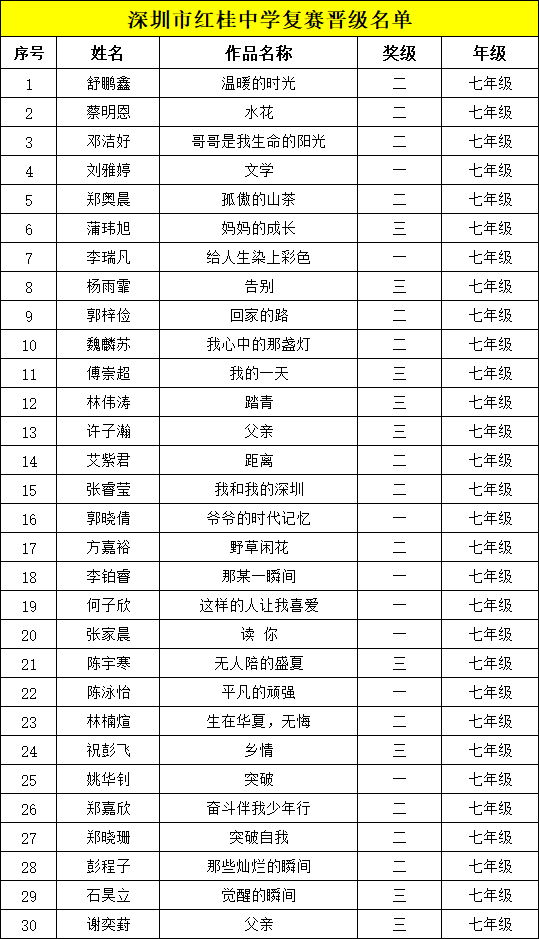 自2021年1月,活動(dòng)征稿啟動(dòng)以來(lái),獲得了深圳市廣大中小學(xué)生、教師、文學(xué)愛(ài)好者的熱烈響應(yīng)積極參與,吸引了深圳百余所學(xué)校的上萬(wàn)人關(guān)注報(bào)名。現(xiàn)公布深圳市紅桂中學(xué)晉級(jí)復(fù)賽名單如下: