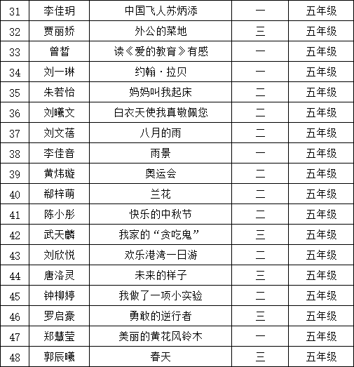 自2021年1月,活動征稿啟動以來,獲得了深圳市廣大中小學(xué)生、教師、文學(xué)愛好者的熱烈響應(yīng)積極參與,吸引了深圳百余所學(xué)校的上萬人關(guān)注報(bào)名?,F(xiàn)公布南山區(qū)荔香學(xué)校晉級復(fù)賽名單如下: