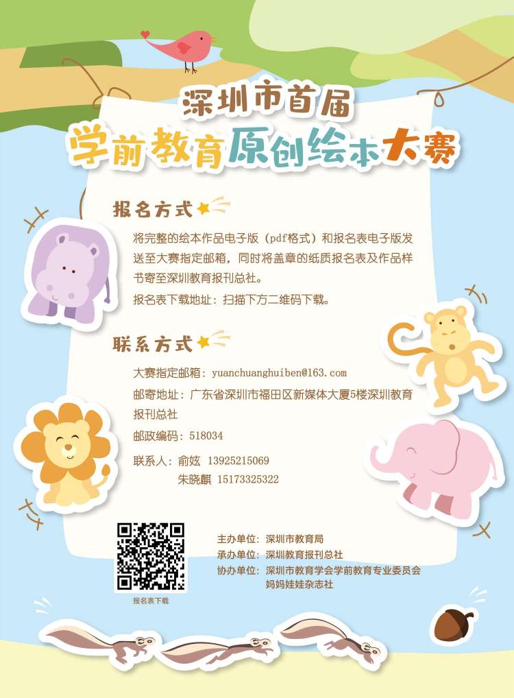 讀特客戶端·深圳新聞網(wǎng)2022年1月12日訊 (記者 陳彬 通訊員 程玉珂)由深圳市教育局主辦,深圳教育報(bào)刊總社承辦,深圳市教育學(xué)會學(xué)前教育專業(yè)委員會、媽媽娃娃雜志社協(xié)辦的深圳市首屆學(xué)前教育“故事老師”大賽暨原創(chuàng)繪本大賽將于2022年1-3月舉辦。
