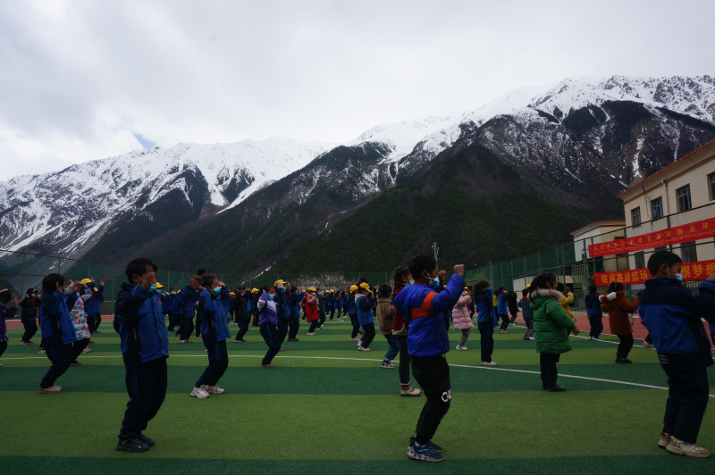 這是一所公路沿線小學(xué),一樓的教室低于公路路面,往窗外仰望,看見牦牛的脊背不緊不慢地悠悠經(jīng)過。而風(fēng)聲則又急又厲,在空中迅疾呼嘯,那動靜像北方冬天的西北風(fēng),卷起農(nóng)民家里屋檐下的裝飾彩色布條上下翻飛。有時就會沒來由地覺得胸悶、胃里有壓迫感,這是高原反應(yīng)在隱隱發(fā)作。其實也不影響跑跳、說笑,只是身體的一些角落隱隱地提醒你:這里是高原。因為地勢高的緣故,四月初的雪在這里下到了膝蓋那么厚,要用推土車來開道。我們來的時候,山上的雪線還十分低,似乎在說著一周前的那場大雪。學(xué)生跳課間操的時候,似乎是頭頂著雪山,高原再也沒有那么直觀地呈現(xiàn)在你面前。西藏的名山實在是太多了,所以人們津津樂道的往往只有那些頂著名的、世界前列的,可對我來說,察隅的一山一水是那樣的多情可親,擁有著毫不遜色于名山大川的壯闊精彩。