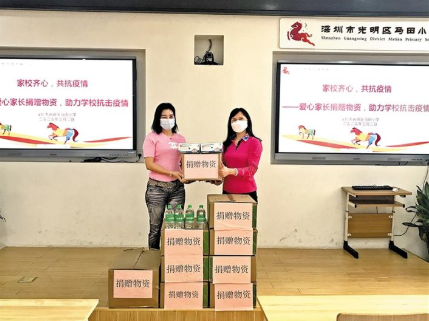 近日,光明區(qū)馬田小學(xué)六(3)班羅心如家長(zhǎng)向?qū)W校捐贈(zèng)口罩1000只、消毒液200瓶等愛(ài)心物資。
