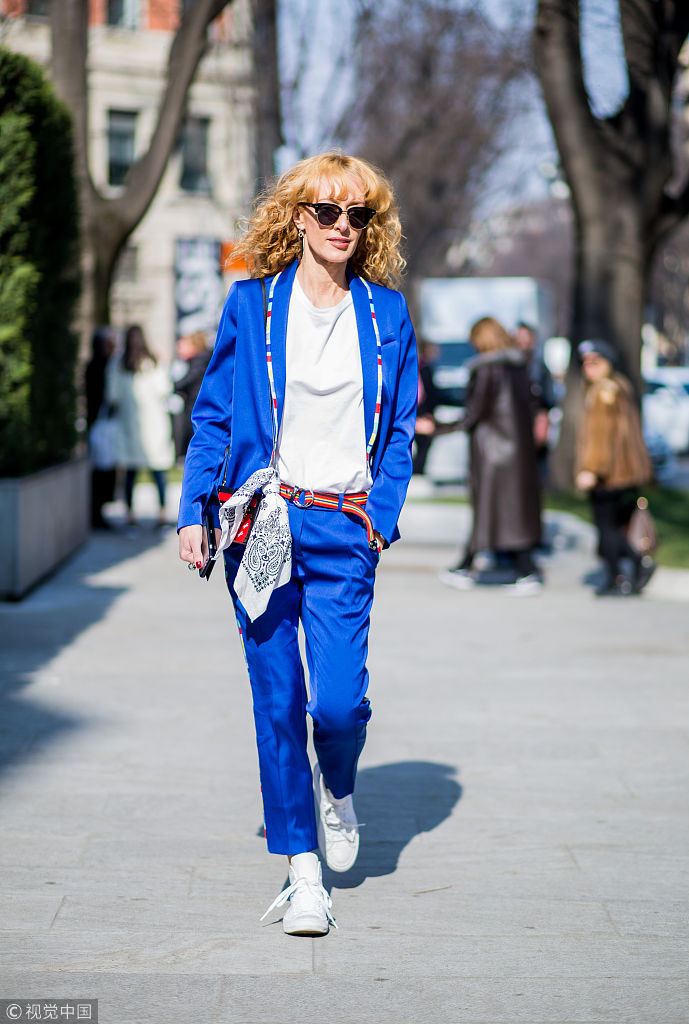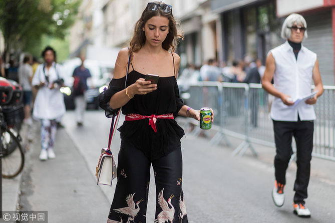 絲巾是作為女性脖子上的物品,早在中世紀(jì)就開始用于抵御寒冷的衣物,但是隨著時(shí)尚的演繹,絲巾早已經(jīng)成為了女性必備的服裝配飾之一。從而街拍中有著無(wú)數(shù)的的絲巾系法,絲巾已不再是保暖這么簡(jiǎn)單,更多的另一種時(shí)尚?。▓D片來(lái)源:視覺(jué)中國(guó))