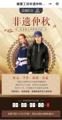 ????據(jù)了解,9月7日上午10時(shí),唯品會唯愛工坊非遺萬物仲秋公益專場全面開售,上線48小時(shí)內(nèi)享受唯愛搶鮮價(jià)。