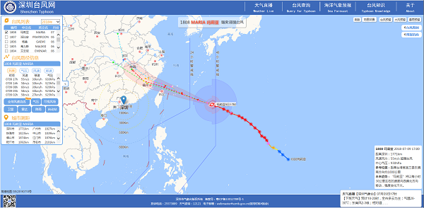 深圳臺風(fēng)網(wǎng)顯示的第8號臺風(fēng)“瑪莉亞”移動(dòng)軌跡