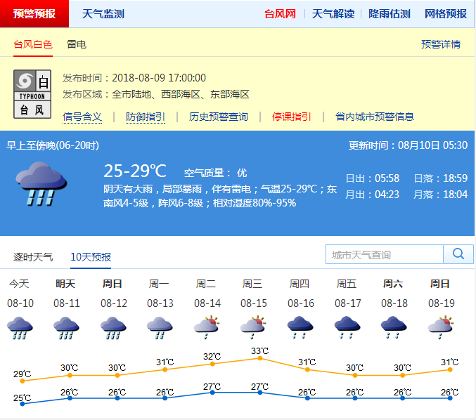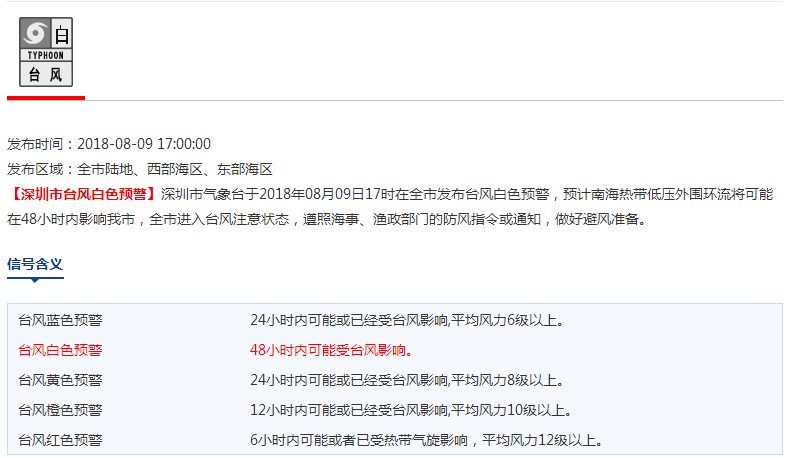 市氣象局于8月9日17時發(fā)布臺風(fēng)白色預(yù)警信號