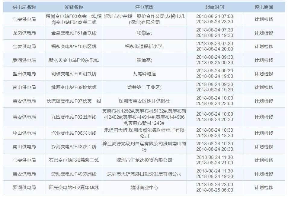 8月24日停電區(qū)域