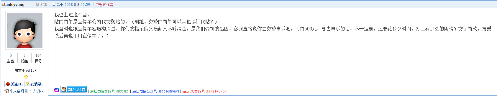深圳新聞網(wǎng)8月29日訊(記者 施冰冰)“深圳的國資泊車位,對外地人來說是個坑。”網(wǎng)友wzmaodong在論壇上發(fā)帖吐槽深圳宜停車。該帖文主要描述了作者因?qū)ι钲诓窜囈?guī)則了解不清,繼而被交警貼罰單的全過程,這讓出差在外的他感到“很冤”。同時也有幾位網(wǎng)友跟帖表示自己也交過這500元的“學(xué)費”。(《深圳的國資泊車位,對外地人來說就是個坑。在不知道深圳泊車規(guī)則的情況下,輕易的被交警貼罰單。》)