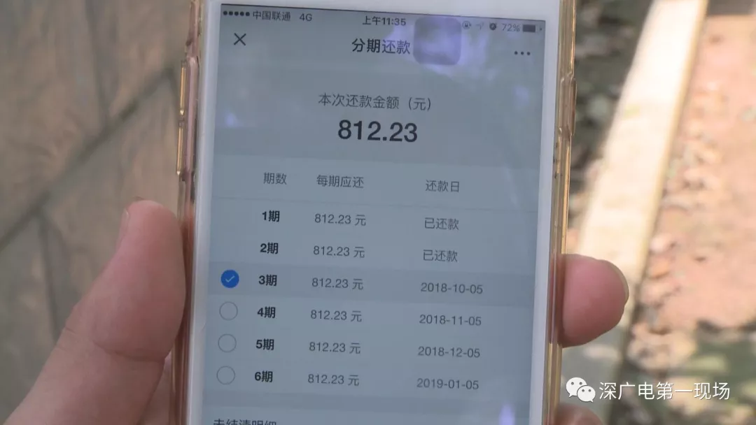 而這一切都要從一次借貸說起。由于需要資金周轉(zhuǎn),今年7月5號,盧先生通過朋友介紹,在微信上找到一家名為“手機貸”的借貸平臺,當(dāng)時借了4400元,分6期還款,每期應(yīng)還812元,每個月5號還款。