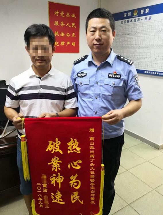 9月12日下午,事主唐先生親自帶著一面寫有"破案神速,熱心為民"的錦旗到丁頭大板橋警務(wù)室,對(duì)南山派出所丁頭社區(qū)民警及巡防員及時(shí)為其找回被盜手機(jī)表示感謝和贊揚(yáng)。(記者 羅典 通訊員 龍威 唐婷)