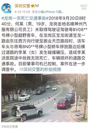 深圳交警官方微博下午發(fā)布該案件情況