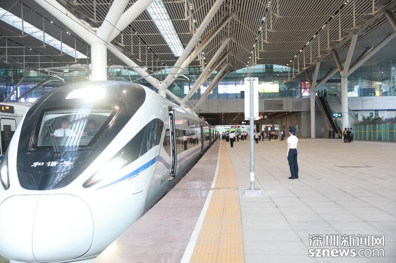 通車當日安排開行95對高鐵列車往返香港,首班車于6時44分從深圳北站開出,19分鐘后直達香港西九龍站。