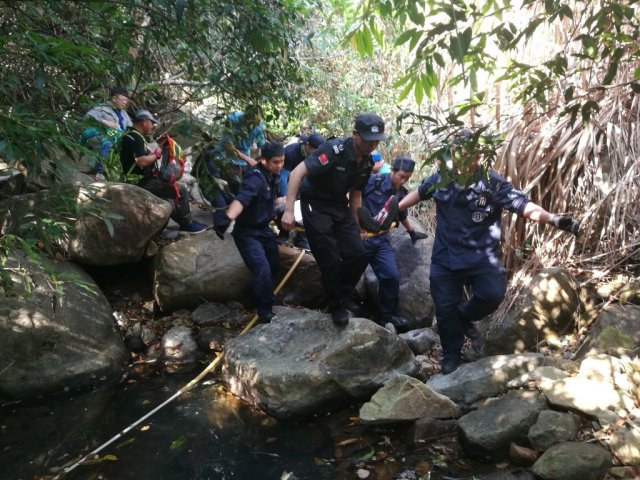 今年4月22日13時40分許,鹽田分局巡警大隊接到指揮中心指令,有人報警稱爬山時在平鹽線鹽田坳一處山谷有一名男子受傷,急需援救。接警后,巡警大隊值班領導立即集結各巡段警力趕往現(xiàn)場救援。由于山路崎嶇、雨濕路滑,民警們歷經(jīng)半個多小時才到達現(xiàn)場。