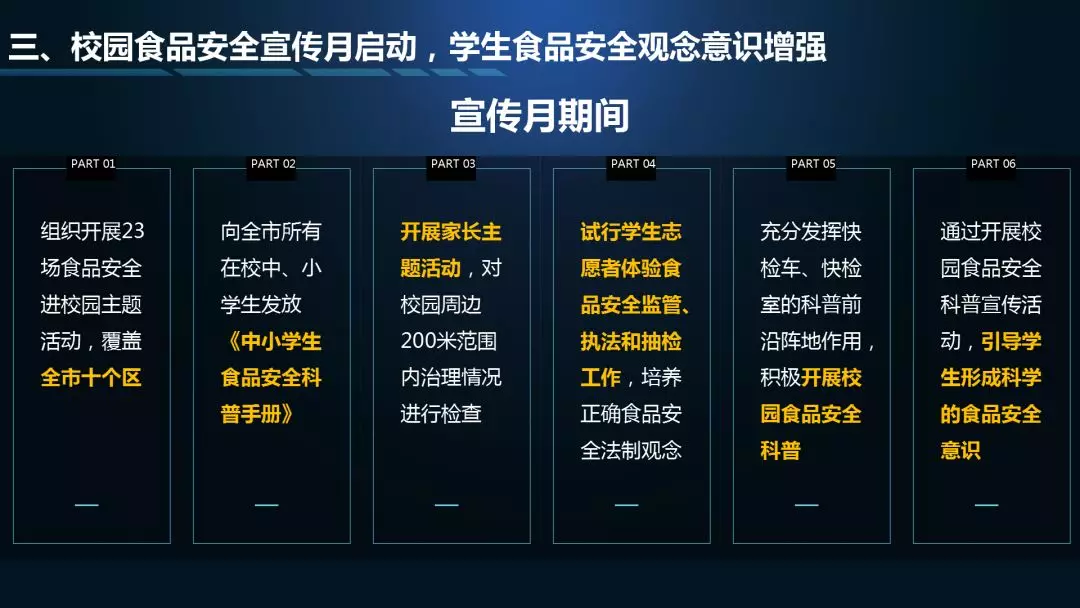 第二個(gè)“3”是三項(xiàng)檢測(cè)結(jié)果通報(bào),分別是中秋、國(guó)慶的特別監(jiān)測(cè)通報(bào),8月份食品例行監(jiān)測(cè)通報(bào),8月份食用農(nóng)產(chǎn)品例行監(jiān)測(cè)通報(bào);