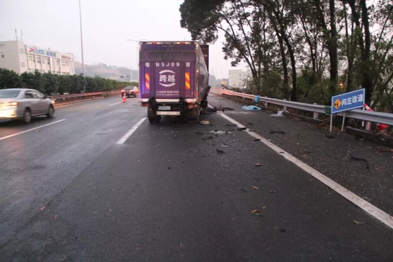04時(shí)35分,其駕車沿南光高速由南往北方向行駛至塘明路段,被后方的粵B5J0**號輕型廂式貨車追尾。