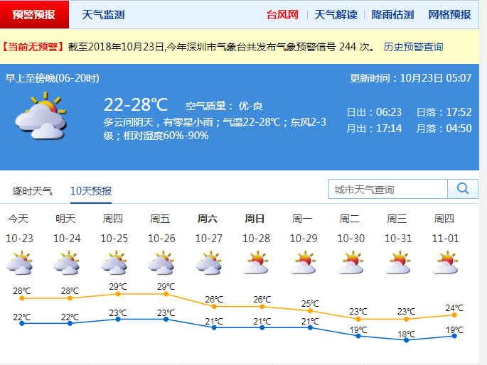 進入10月以來,天氣漸漸轉(zhuǎn)涼,目前已有兩次明顯冷空氣影響深圳,主要出現(xiàn)在10月11日至12日、16日至17日,10月27日至29日還將有冷空氣。據(jù)了解,與去年相比,今年冷空氣來得早一些,最早在9月上旬就有冷空氣影響了,冷空氣的頻次也相對較多,但強度都不是太強,所以總體氣溫較舒適。