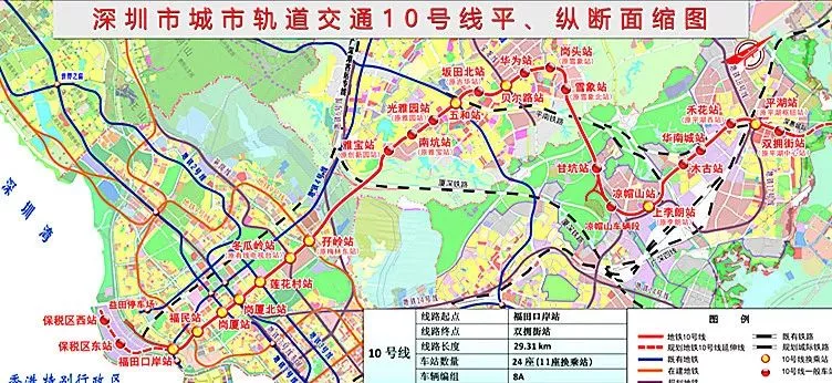 地鐵10號線全長29.2千米,起自福田區(qū)福田口岸站,終至龍崗區(qū)平湖中心站,南北向貫穿深圳市區(qū),全部采用地下敷設(shè)方式。