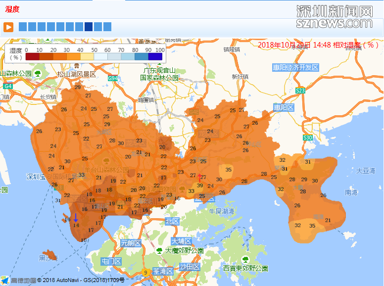 深圳新聞網(wǎng)10月29日訊(記者 陳婕)29日,深圳市最高氣溫直逼30度,與此對應(yīng)的是,今日最低相對濕度24%,比今日歷史最低值25%(1978、1991年)還要干,真叫一個晴朗干燥。