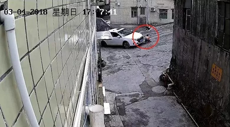 2018年3月5日19時(shí),在蔡屋圍南村的通道里,一名7歲的小男孩蹲在路口,被正在轉(zhuǎn)彎的小轎車撞倒后,車輪碾壓其背部,造成重傷。