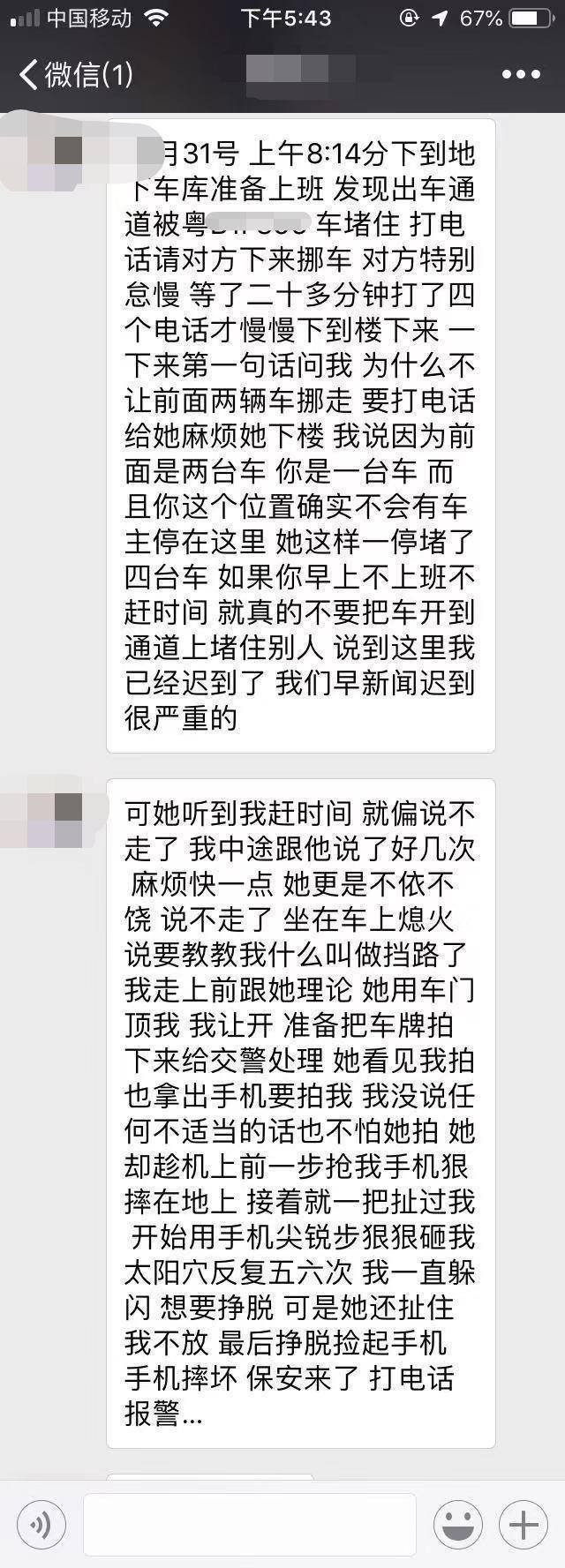 俗話說遠(yuǎn)親不如近鄰,但有的時(shí)候,同住一棟樓的業(yè)主卻因一點(diǎn)小事而大打出手,鬧得不歡而散。近日,家住南山蛇口的李小姐向記者報(bào)料,10月31日早上,因車庫過道被其他車輛阻擋。她打電話請車主下樓挪車,不料手機(jī)被對方摔壞了,自己也被打傷了。