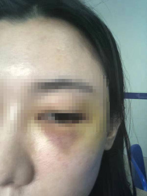 根據(jù)照片顯示,李小姐左眼下有一塊明顯淤青的部位,她表示,這是對方用手機(jī)尖銳部反復(fù)砸她臉部所受到的傷。因?yàn)槟槻渴軅?,目前她只能暫停工作?/p>