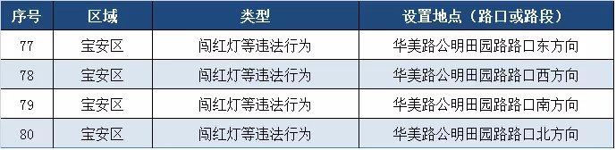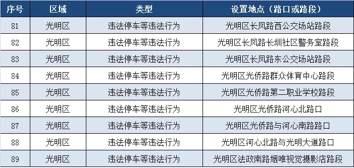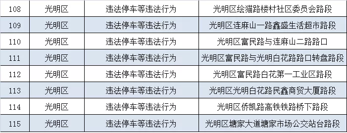 深圳新聞網(wǎng)11月5日訊(記者 何暢)據(jù)“深圳交警權(quán)威發(fā)布”微信公眾號(hào)消息,近期深圳交警公布啟用115套交通技術(shù)監(jiān)控設(shè)備,重點(diǎn)整治違法停車、沖紅燈、超速、逆行、不按車道方向行駛、占用公交車道等多種違法行為。其中福田區(qū)56套,羅湖區(qū)20套,寶安區(qū)4套,光明區(qū)35套。