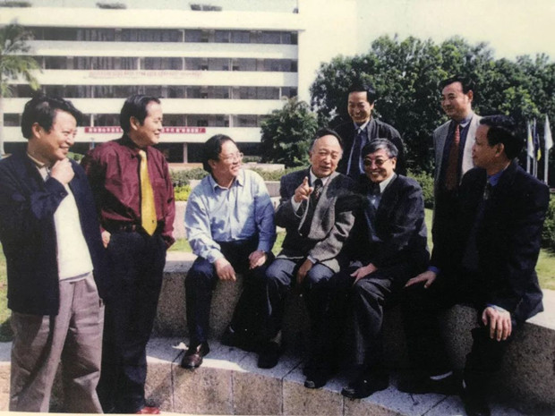 2002年,深大文學(xué)院教授共商發(fā)展,自左到右:莊錫華、吳俊忠、吳予敏、胡經(jīng)之、陳繼會(huì)、章必功、郭杰、郁龍余。