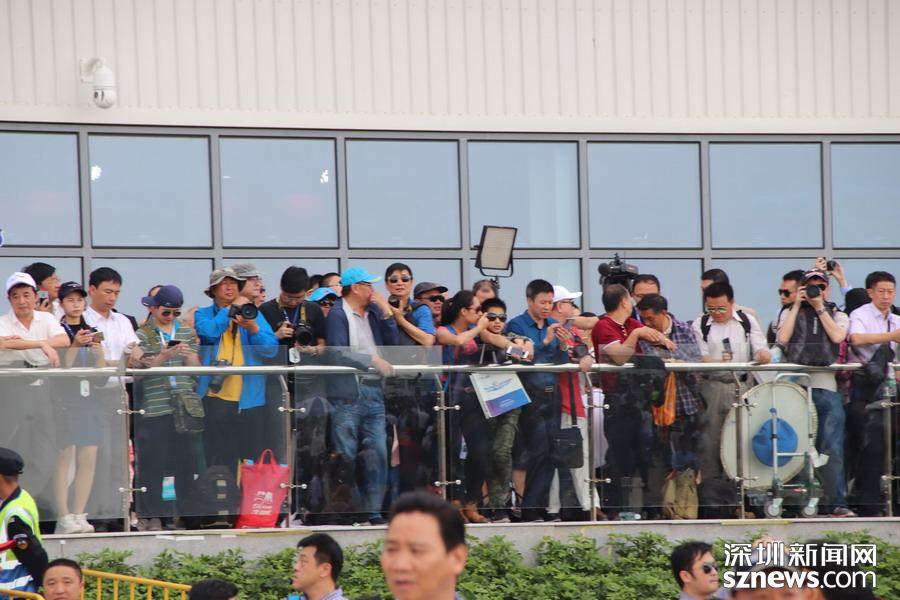 占據(jù)有利位置準(zhǔn)備拍攝飛行表演的參觀者