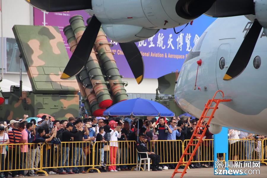 在運(yùn)-9大飛機(jī)前拍攝的觀眾