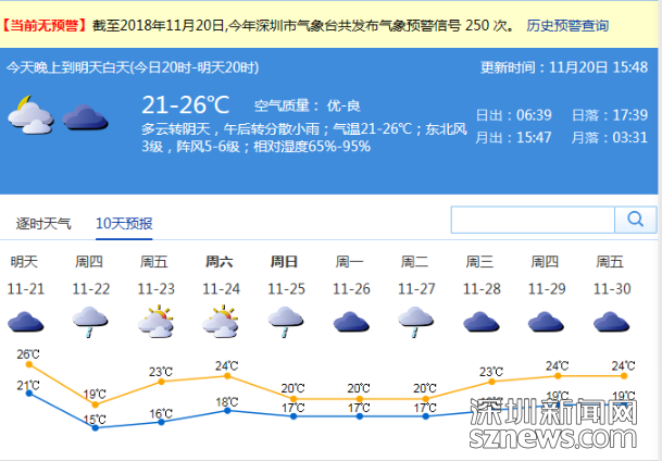 市氣象局發(fā)布未來十天天氣預(yù)報(bào)(數(shù)據(jù)更新于11月20日15時(shí)48分)