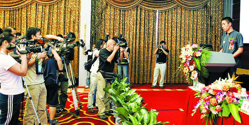 2007年10月12日,深圳華大基因研究院舉行新聞發(fā)布會,宣布順利完成首個“中國人基因組圖譜”的繪制工作。 陳富 吳鎧峰 攝