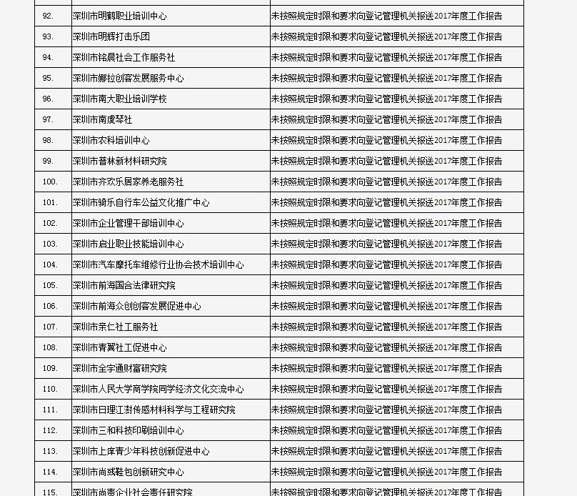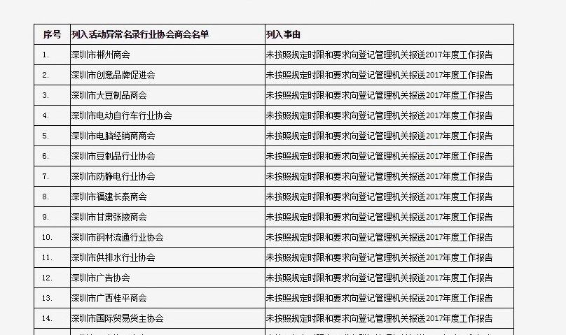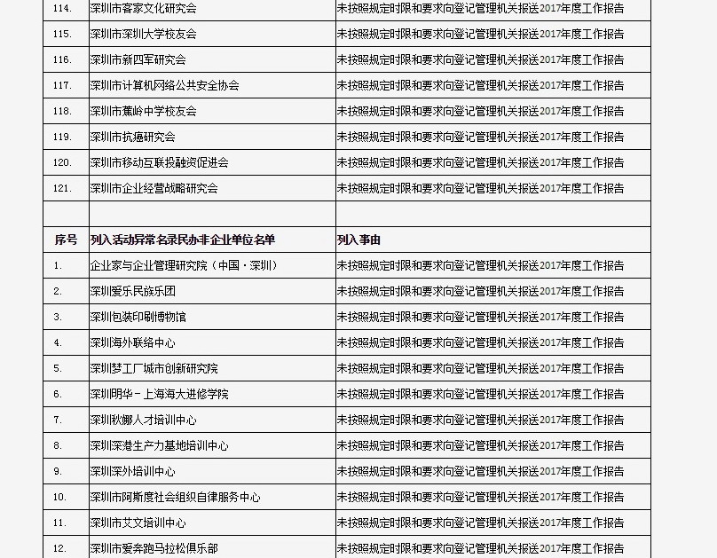 列入社會(huì)組織活動(dòng)異常名錄 來源:深圳市民政局