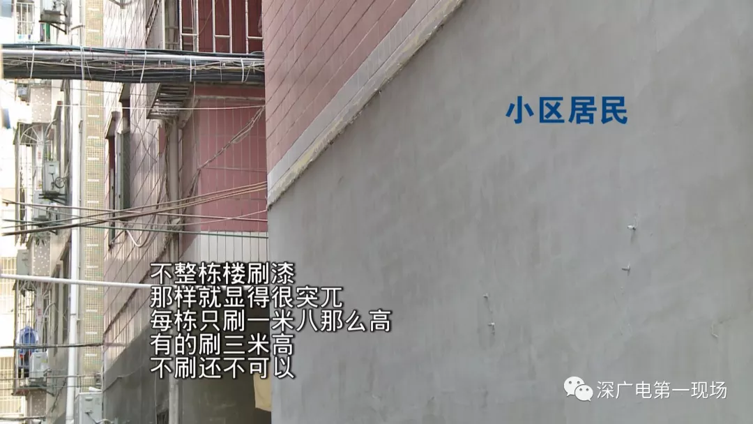 一些居民們投訴說,外墻粉刷只刷三米高,覺得很難看,如果要美化外墻,就應(yīng)該對整棟樓從上到下全部美化。