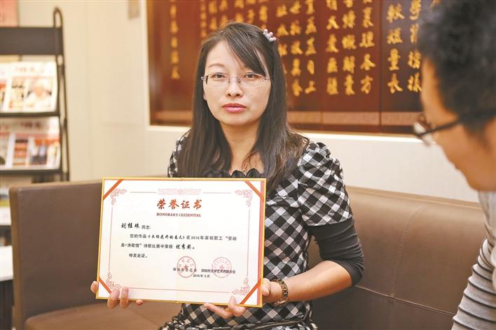 劉桂珠告訴記者,當她還在深圳三洋公司上班時,因為廠里自己辦有內(nèi)部報紙,所以她就經(jīng)常投稿,不時稿子被選上發(fā)了出來。當時,工廠或工廠所在的街道有征文活動,她也經(jīng)常會投稿參加?!爸饕菍懝S里的生活,也報道工作上的一些事。此外,我以前喜歡寫一些詩歌,現(xiàn)在則會寫一些隨筆散文。”