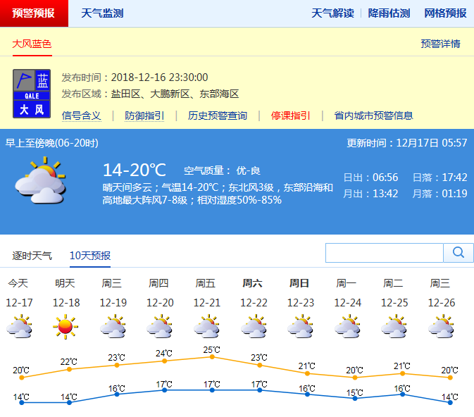 深圳新聞網(wǎng)12月17日訊(記者 劉婷) 受冷空氣影響,近來(lái)深圳氣溫下降,本周前期冷空氣持續(xù)影響,17日~18日深圳晴天間多云,早晚清涼,白天溫暖,空氣干燥。其中17日北風(fēng)較大,沿海和高地最大陣風(fēng)6級(jí)~7級(jí),氣溫14℃~20℃。