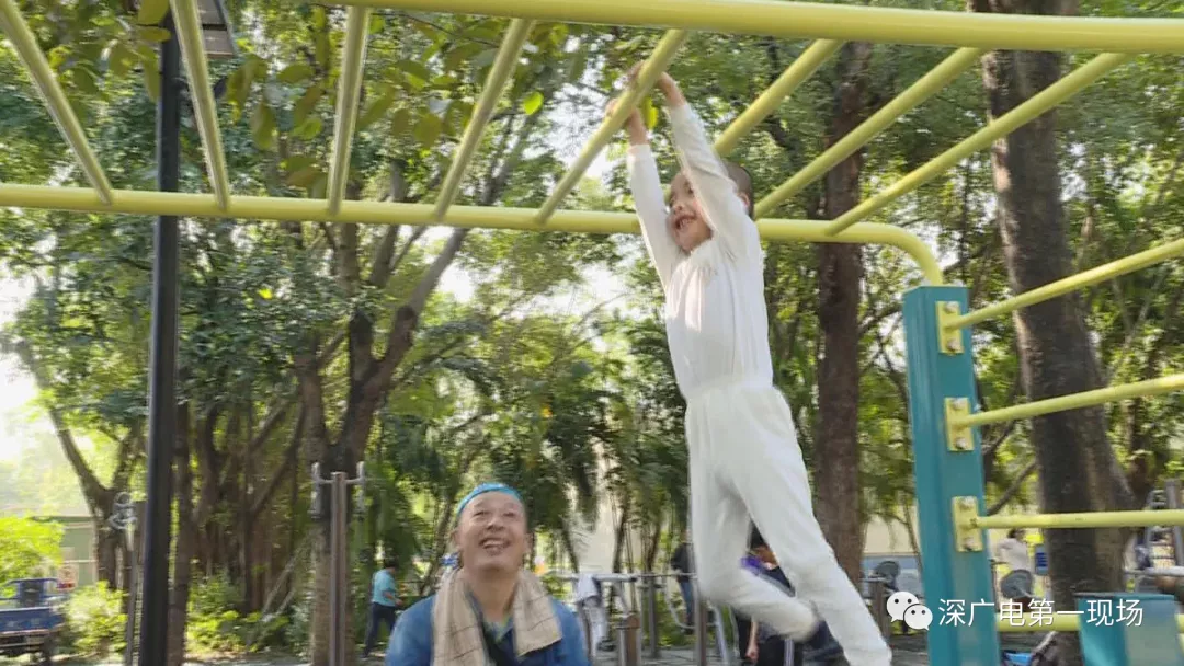 周邊市民:“他是在公園長大的小朋友,經(jīng)常他老爸帶著他來運動,很多年了。身體很靈活,比一般的小朋友靈活很多,小孩子這樣鍛煉很好?!?/p>