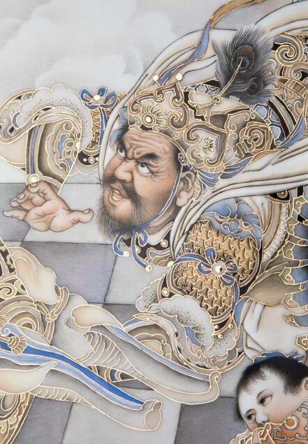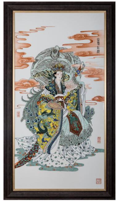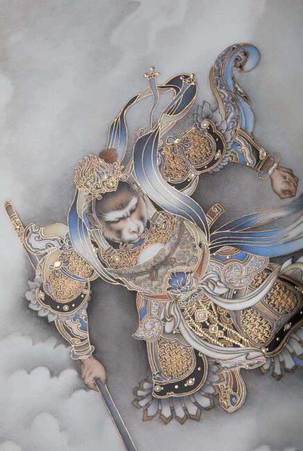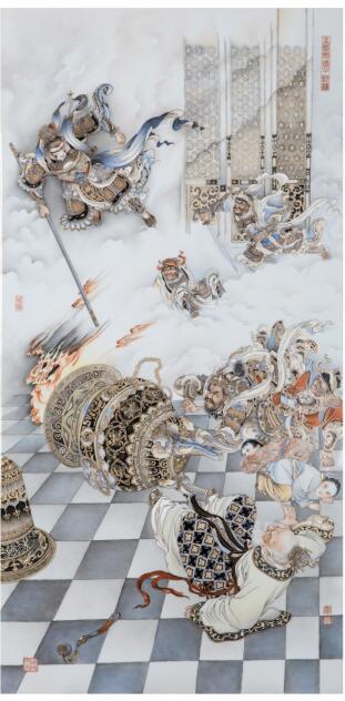 顧堅瓷板畫代表作再現(xiàn)了齊天大圣大鬧天宮的經(jīng)典畫面(展覽方 供圖)