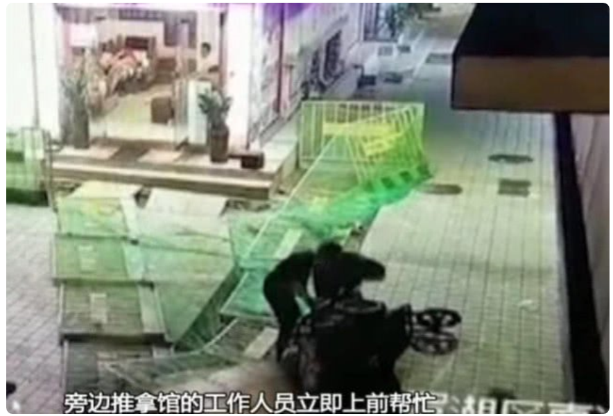 廣東DV現(xiàn)場2018年12月25日訊 事發(fā)在12月21日早上六點半左右、深圳市羅湖區(qū)向西村內。只見男子開著三輪車在經(jīng)過圍蔽工地旁的護欄邊時,突然連人帶車摔倒進了圍蔽區(qū)域。他當時撞到了擋板,撞到了擋板之后就倒了,撞到了頭部。發(fā)現(xiàn)男子摔倒后,旁邊推拿館的工作人員立即上前幫忙。