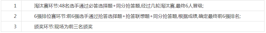 你熟悉改革開放的相關(guān)知識嗎? 你了解深圳這個改革開放窗口城市嗎? 你關(guān)注深圳特區(qū)的發(fā)展歷程嗎? 你知道深圳各大地標(biāo)嗎? …… 只要你有興趣 歡迎報(bào)名參加我們將選取 活動現(xiàn)場還有驚喜大禮等你哦大家千萬別錯過喲! 第一名將獲得華為P20手機(jī)一部 圖片來源:華為官方旗艦店 前6強(qiáng)選手將獲得豐厚獎品哦! 競賽流程 競賽規(guī)則 淘汰賽獎勵和規(guī)則 【獎勵】本次知識競賽共有七輪淘汰賽,將從48名參賽選手中,選出6位選手晉級排位賽。48名參選選手均將獲得手繪深圳景色明信片,6強(qiáng)選手都將獲得獎品。 【規(guī)則】淘汰賽中,所有選手都兩兩PK答題,號碼牌數(shù)字由選手自己盲選,號碼牌接近的兩人自動互為PK對手(1號牌 PK2號牌、3號牌 PK4號牌……依次對應(yīng)PK)。題目皆為選擇題,答案有A、B、C三個,選手要從中選出正確答案。誰答對的多誰贏,同分再搶答一題定勝負(fù),輸?shù)囊环阶詣犹蕴?/p> 排位賽規(guī)則 【總規(guī)則】所有選手都將分到一個搶答器,初始得分都為100分,比賽過程中選手們進(jìn)行搶答,答對得20分,答錯扣10分,提前搶答扣10分,每題答題時(shí)間10秒,答題超時(shí)扣10分。 排位賽共有20道搶答題,其中10題為選擇題,10題為聯(lián)想題: 【選擇題規(guī)則】選擇題答案有A、B、C三個,選手要從中選出正確答案,參賽選手必須在主持人喊出“開始”后,才可搶答,提前搶答扣分; 【聯(lián)想題規(guī)則】聯(lián)想題的每一道題的答案都是一個專有名詞,每道題目主持人會用較慢速描述該名詞開始,選手從主持人的描述中獲取線索,猜出答案,選手可隨時(shí)搶答。答對一題得20分,答錯扣10分。 了解清楚比賽流程和規(guī)則之后, 是不是想趕緊報(bào)名呢? 那么,具體如何參與呢? 報(bào)名方式 1、掃描下方二維碼進(jìn)入原文留言,回復(fù)“報(bào)名+姓名+電話”; 2、回復(fù)截止時(shí)間至2019年1月3日。如若報(bào)名成功,將會收到我們的回復(fù)通知; 3、本次活動免費(fèi)報(bào)名,活動解釋權(quán)歸深圳發(fā)布廳所有。 期待你的參與! 快快報(bào)名吧! 內(nèi)容來源:深圳發(fā)布 如需轉(zhuǎn)載,請注明以上內(nèi)容