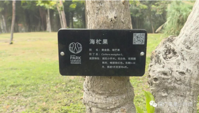記者在園林管理中心了解到,海杧果,又名黃金茄、牛心荔,夾竹桃科,因其果實(shí)似芒果而得名。其樹為常綠小喬木,海芒果花多美麗而芬芳,因此被選作公園的觀賞性植物,樹冠美觀又喜歡生長在海邊。