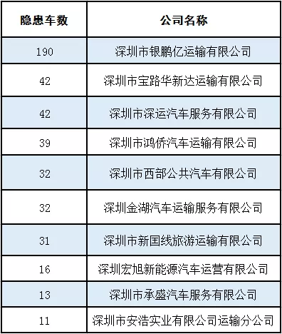 我市公路及旅游客運(yùn)大客車隱患最多的前十個(gè)公司