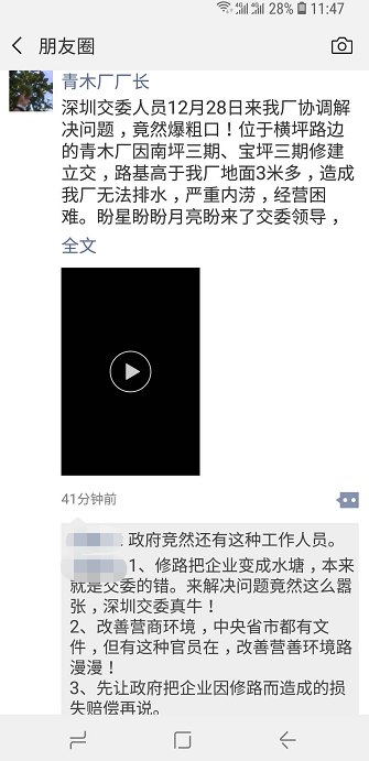 深圳交委吳姓工作人員到現(xiàn)場協(xié)調(diào)時,爆粗口惹怒了工廠廠長