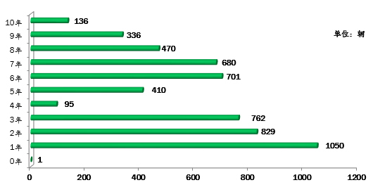 ▲行業(yè)教練車車齡統(tǒng)計圖(注:根據(jù)《機動車強制報廢標(biāo)準(zhǔn)規(guī)定》第五條規(guī)定:小型教練載客汽車使用10年)